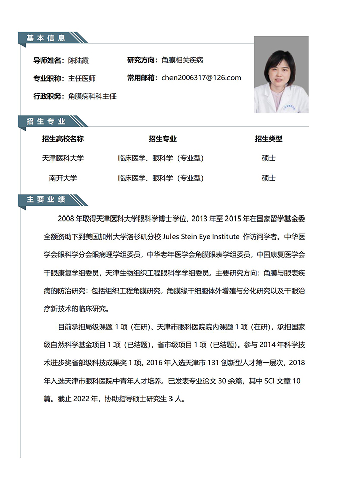 研究生培养 >> 导师介绍 >> 陈陆霞