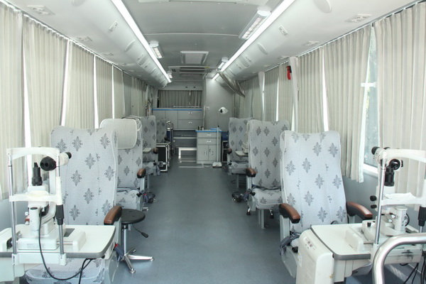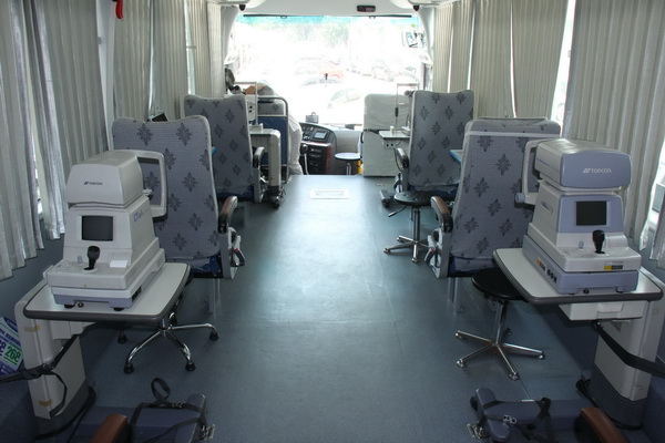 天津市眼科医院“光明大巴”简介:车身长13米,宽2.55米,高3.75米,车内拥有先进的检查设备。包括:裂隙灯显微镜、眼底镜、电脑验光仪、非接触眼压计、焦度计等;可以筛查多种眼科疾病,包括:结膜炎、角膜炎、外眼病、白内障、青光眼、眼底病、糖网病等。