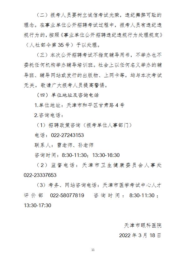 首页>>天津市卫生健康委员会所属天津市眼科医院2022年度公开招聘公告