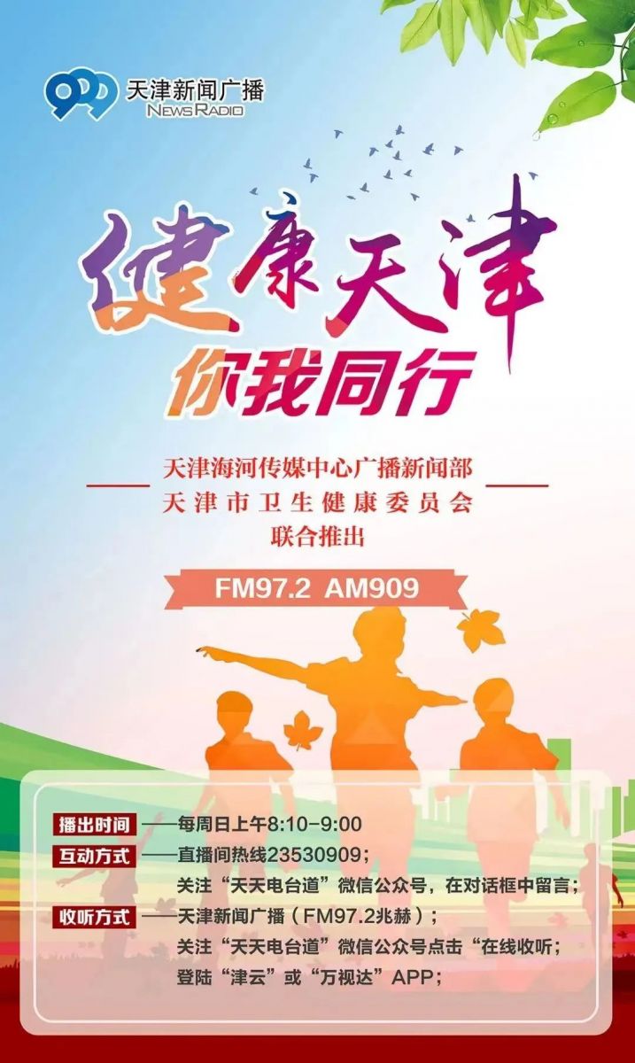 天津海河传媒中心广播新闻部与天津市卫生健康委联合制作的《健康天津 你我同行》专题节目在天津新闻广播FM97.2、 AM909同步播出。