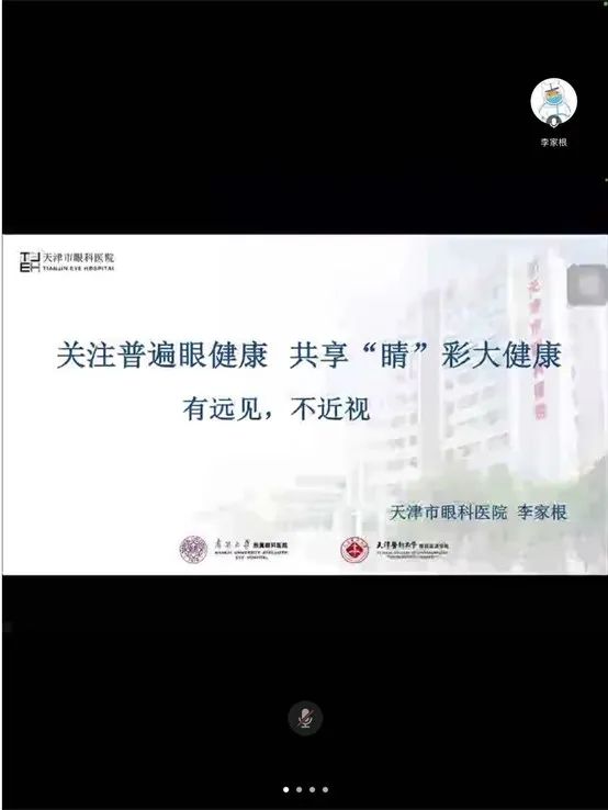 我院援沪医疗队在圆满完成支援任务,回津统一休整期间,队员们联合隔离点兄弟单位,于爱眼日当天,开展一场特殊的线上科普活动。队员们精心筹备,从海报、PPT设计到主题宣教,全程参与,同时,防盲办公室与院长办公室积极配合,提供所需。线上科普由队长王琦妙主持,李家根医生、徐路路医生、任立宇医生分设三个专题,就热门的眼健康问题做了详实的讲解,并及时回答提问,现场气氛十分活跃。