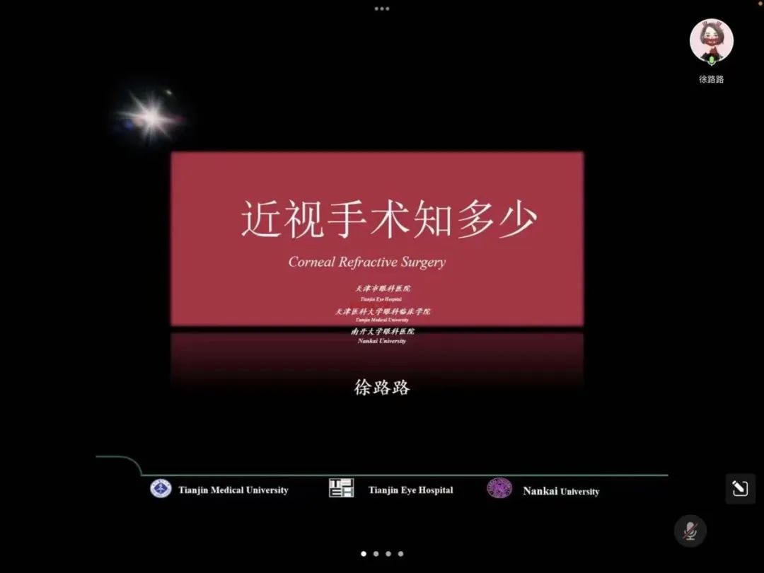 徐路路医生通过讲解角膜屈光手术的原理、方式及手术相关问题做了细致的讲解,利用视频形式让大家对手术的了解更为直观。