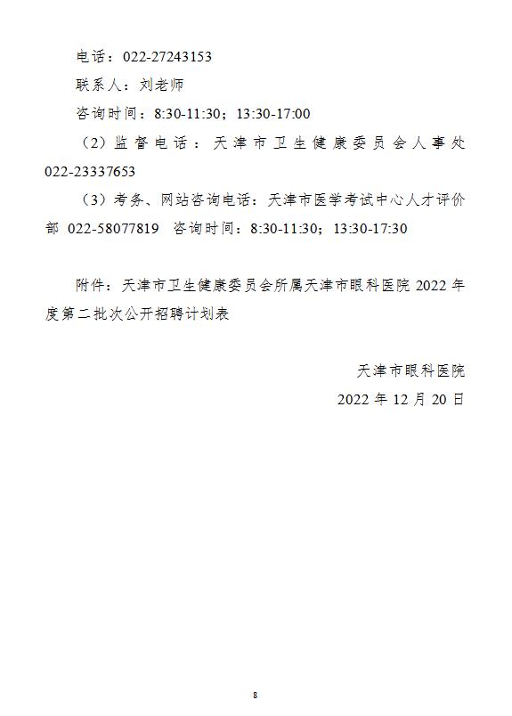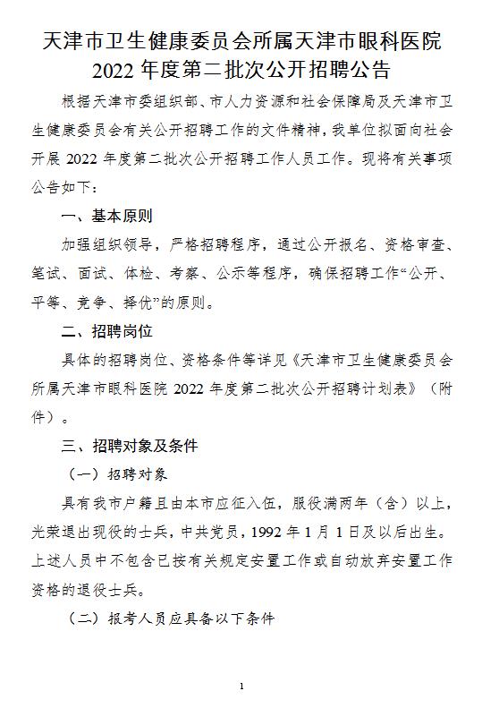 首页>>天津市卫生健康委员会所属天津市眼科医院2022年度第二批次公开招聘公告