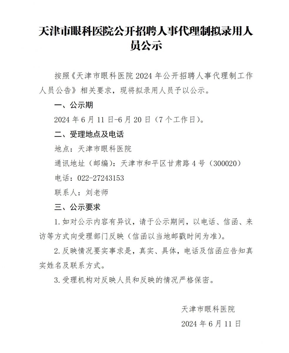 首页>>天津市眼科医院公开招聘人事代理制拟录用人员公示
